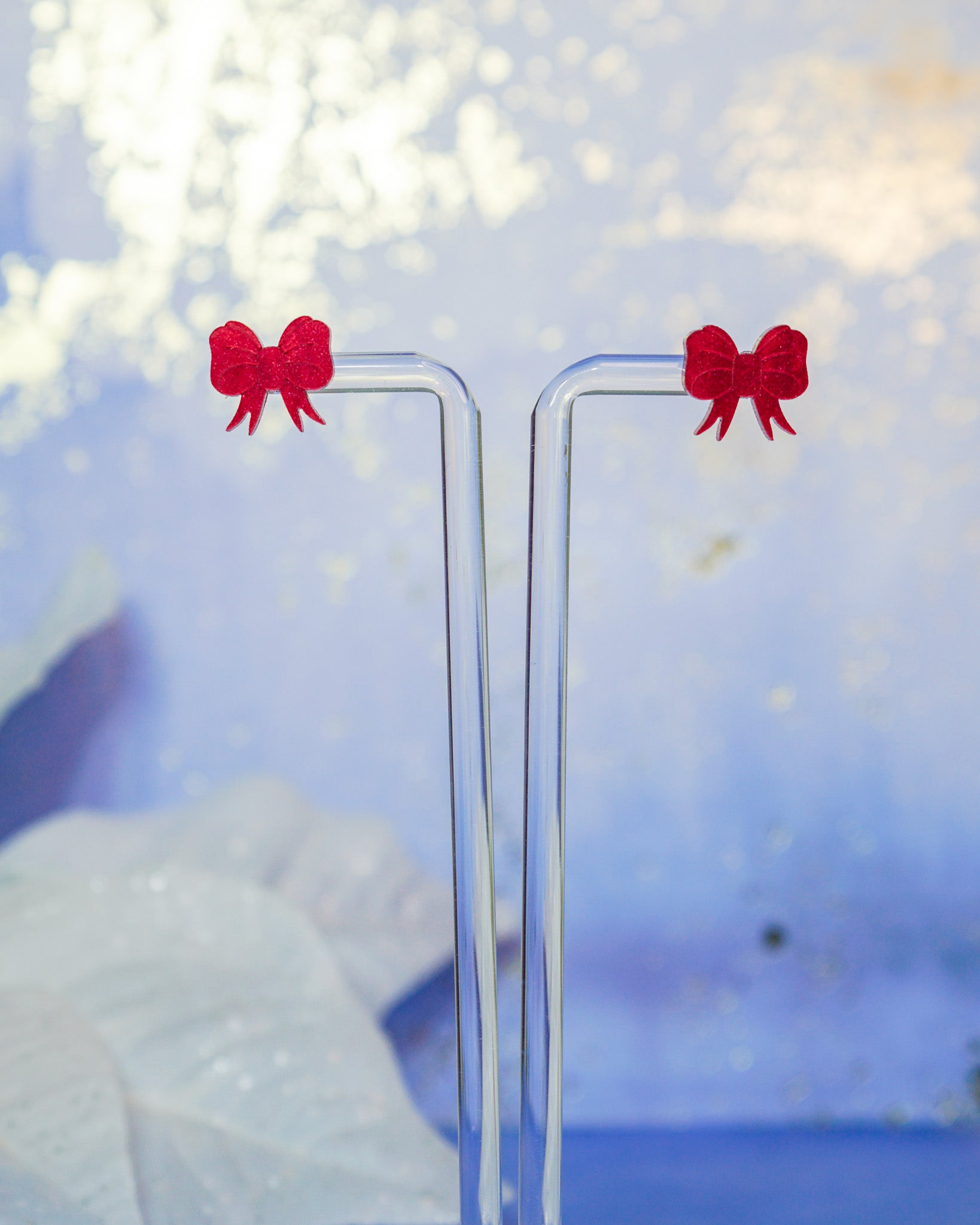 These bow studs are gorgeous and statement making! They are cut and engraved by our in-house laser. We glue the post to the acrylic and then cover the connection with resin for added durability.