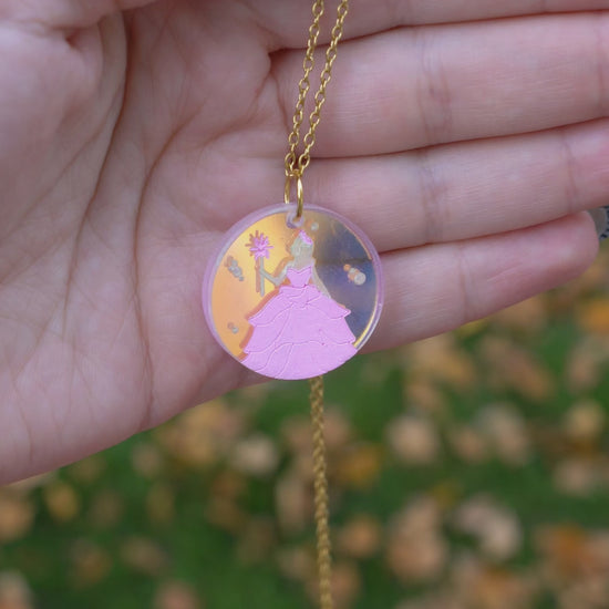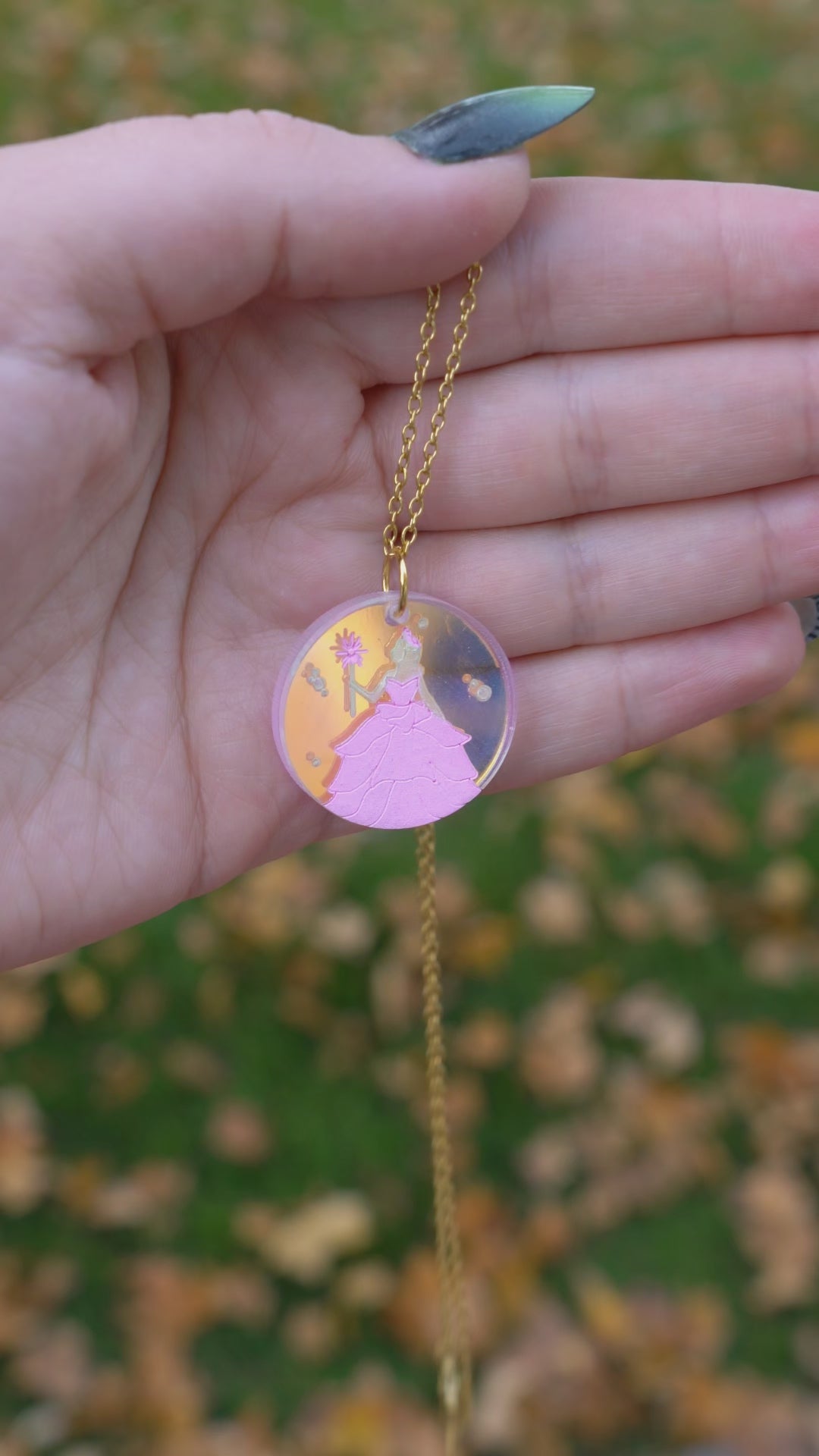 You're gonna be popular in this necklace! Hand-painted and featuring iridescent acrylic that shifts with every move.