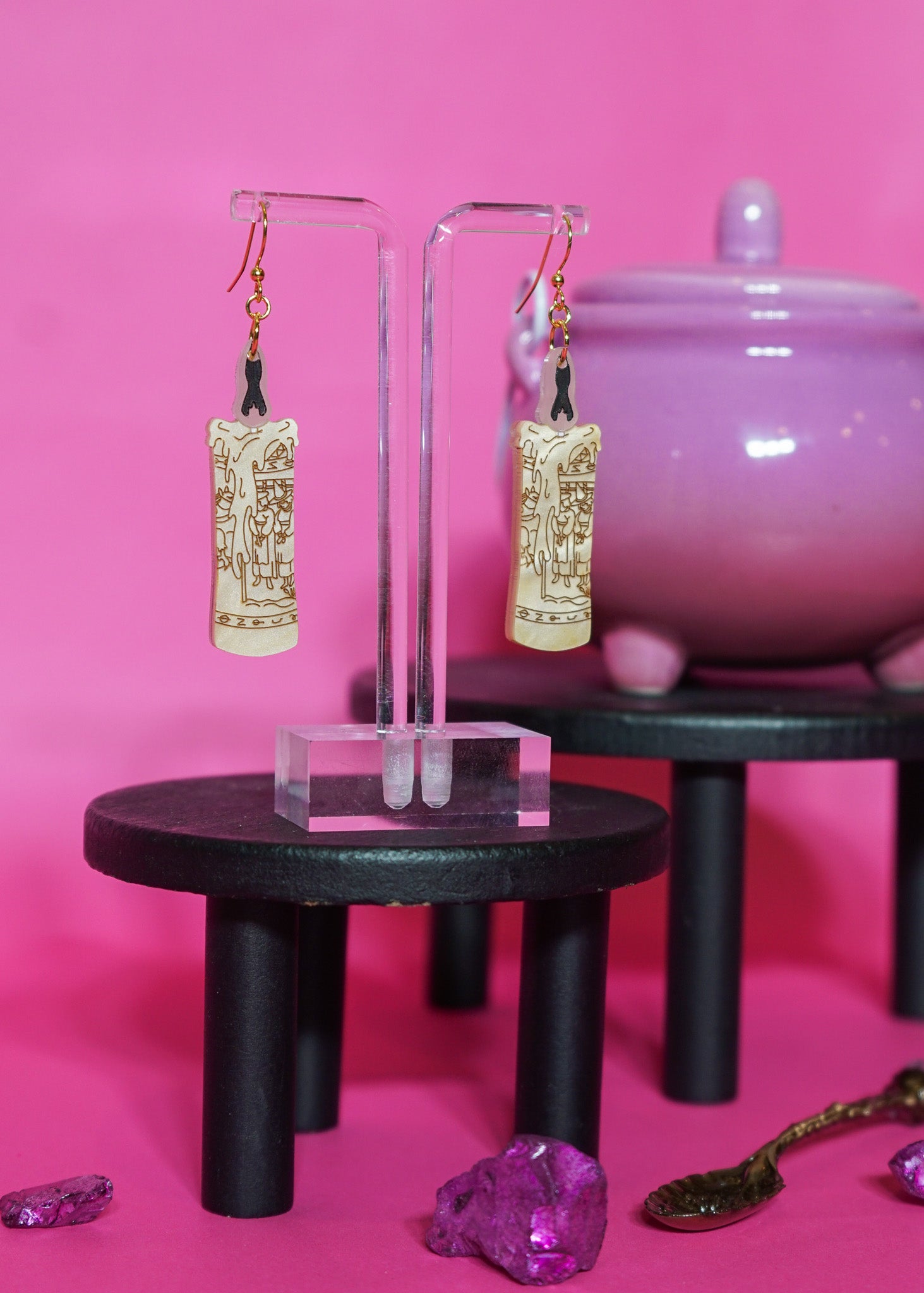 Feeling a little witchy? These are the earrings for you! Inspired by a certain candle with a dark flame from a certain movie with three witches... and a cat... and a zombie.